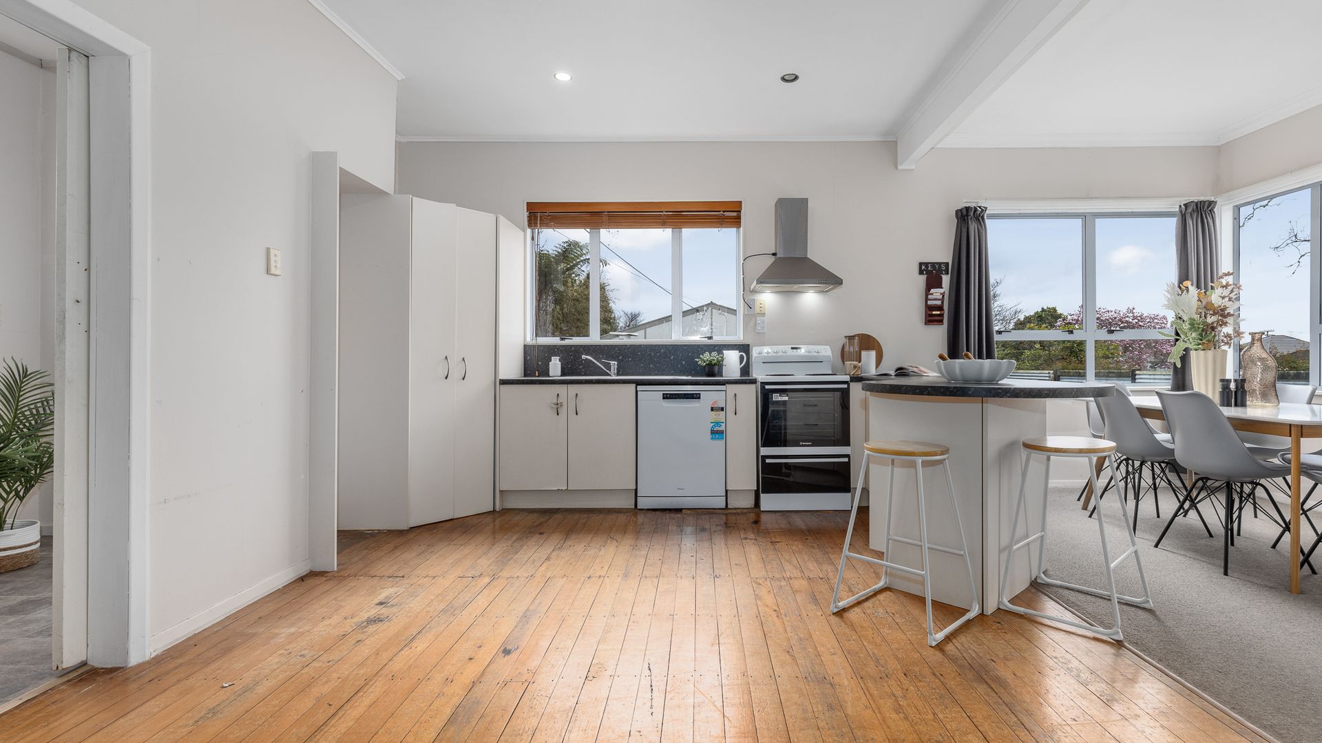 This charming three-bedroom home is full of warmth and light, with an easy, open-plan layout that connects everyone – whether you’re cooking in the kitchen overlooking the backyard, enjoying breakfast at the bar, relaxing in the separate lounge, or soaking up the sun on the wraparound deck.