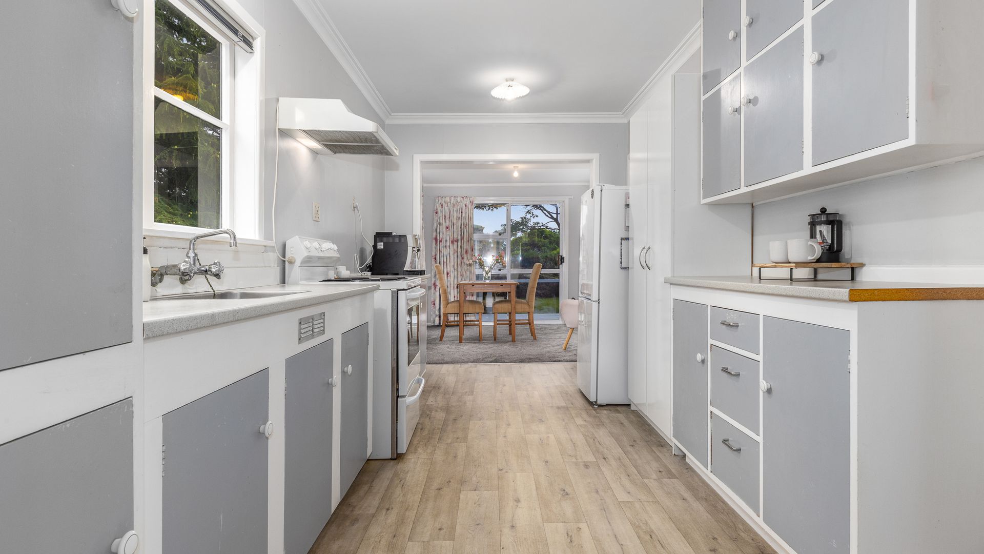 The kitchen is functional and light-filled, flowing seamlessly into the dining area and out to the private backyard. Whether you’re entertaining friends or keeping an eye on the kids, this layout works effortlessly.